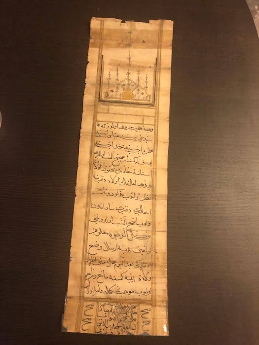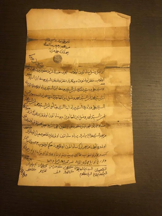 Bâz aslı ve nesli sâdâttan olub elimizde Nakîbu'l Eşrâf hazretlerinden şecereleri olub nazar olmanın dediklerinden nazar olundukta es-Seyyîd Yusûf b. es-Seyyîd Câfer ve Seyyîd Ali ve Seyyîd Leşkerî lî ibn-i es-Seyyîd Yusûf b. es-Seyyîd Pîr Bâd olub ve Seyyîd Pîr Bâd lî ibn-i es-Seyyîd Muhammed lî ibn-i es-Seyyîd Ahmed nesl-i Zeynû'l-Âbidîn divân-ı sâdâttan olub mümâileyh es-Seyyîd Ali ve biraderi es-Seyyîd Pîr Bâd Ebnâ-u es-Seyyîd Abbâs lî ibn-i es-Seyyîd Hamza lî ibn-i es-Seyyîd Muhammed lî ibn-i es-Seyyîd Ahmed ve nesl-i Zeynû'l-Âbidîn divân-ı sâdâttan oldukları Nakîbu'l-Eşrâf hazretlerinin mümza (imza) ve mühürlü şecerelerin mestur ve mukayyîd bulunmağın şecere-i şerîfe sicil-i mahfuza kayıt olunduktan sonra mezbur es-Seyyîd Ali ile biraderi Pîr Bâd sâdâttan oldukları zahir ve ayân olmaları müşâhede olduğu ecilden (açılmadan?) mezburlar ki sâdâttan olmaları hüküm olunub bu huruf lî ecl-i et-temekkür ketb ve tahrir olunub talibi yerine va'z olunduğu lede'l-hace müzekker ... olacağı müzakere ve haririni? evâil-i cemaziye'l-ulâ sene selâse işrîne elfe (Hicrî 1023 / Miladî 1614)